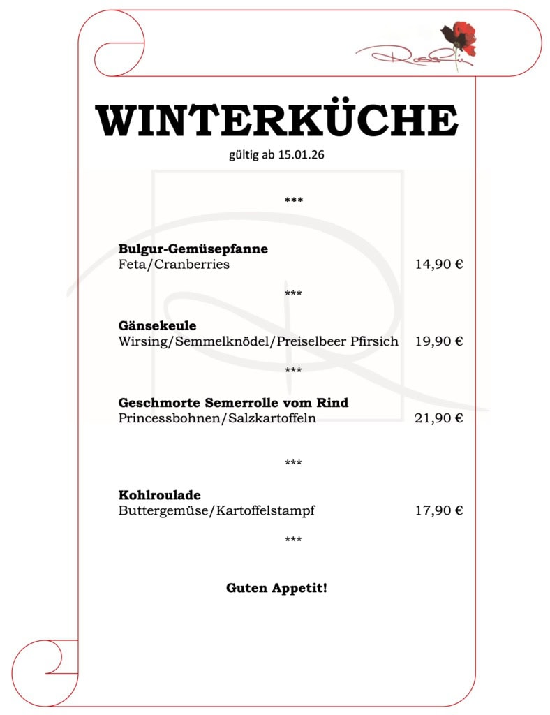 Die Speisekarte des Rosalie Landhaus ist ein kulinarisches Highlight, das für jeden Geschmack etwas Passendes bereithält.